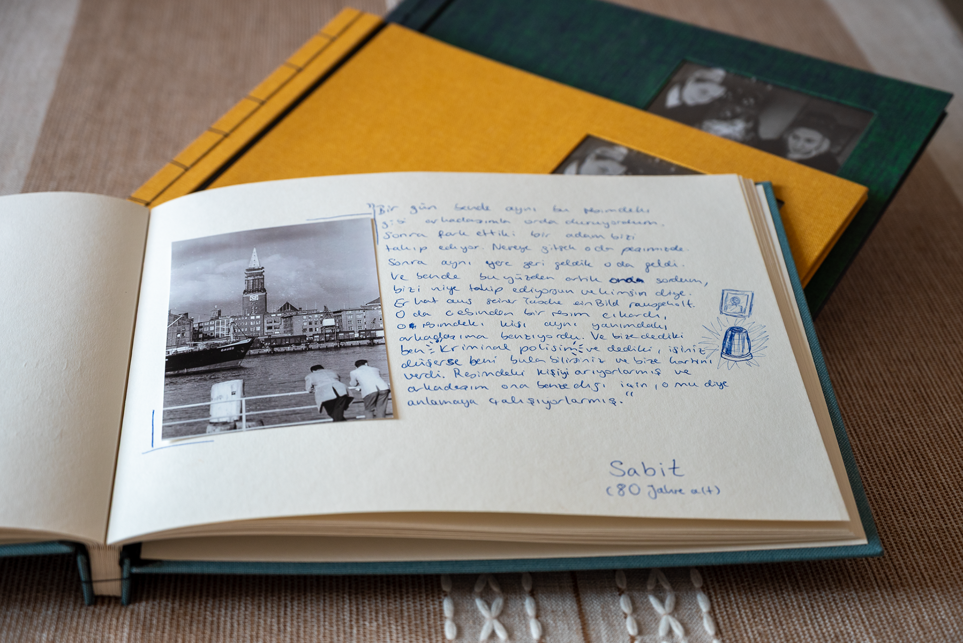 This production was made possible by the "Interventionist Art in Public Space in Kiel-Gaarden" fund of the City of Kiel. The project was realized by the duo multicArts, consisting of Pola Rader and me, in close cooperation with the Kiel City Archives, the Mehrgenerationenhaus Vinetazentrum, and the Soziale Stadt Gaarden office. Essential support in intercultural networking and multilingual communication was provided by the Türkische Gemeinde Schleswig-Holstein e. V. Within the team, multicArts was responsible for artistic direction and overall coordination, while Arturo Sayan shaped the process-based mediation work on-site. Linguistic and intercultural mediation were ensured by Şeyda Okumuş and Aylin Eser. Olena Danylova accompanied the process through digital documentation and public relations. The material conclusion was formed by the Buchbindemitmachwerkstatt Kiel under the direction of Carmen Schmidt, who transformed the collected fragments into the final memory album.
