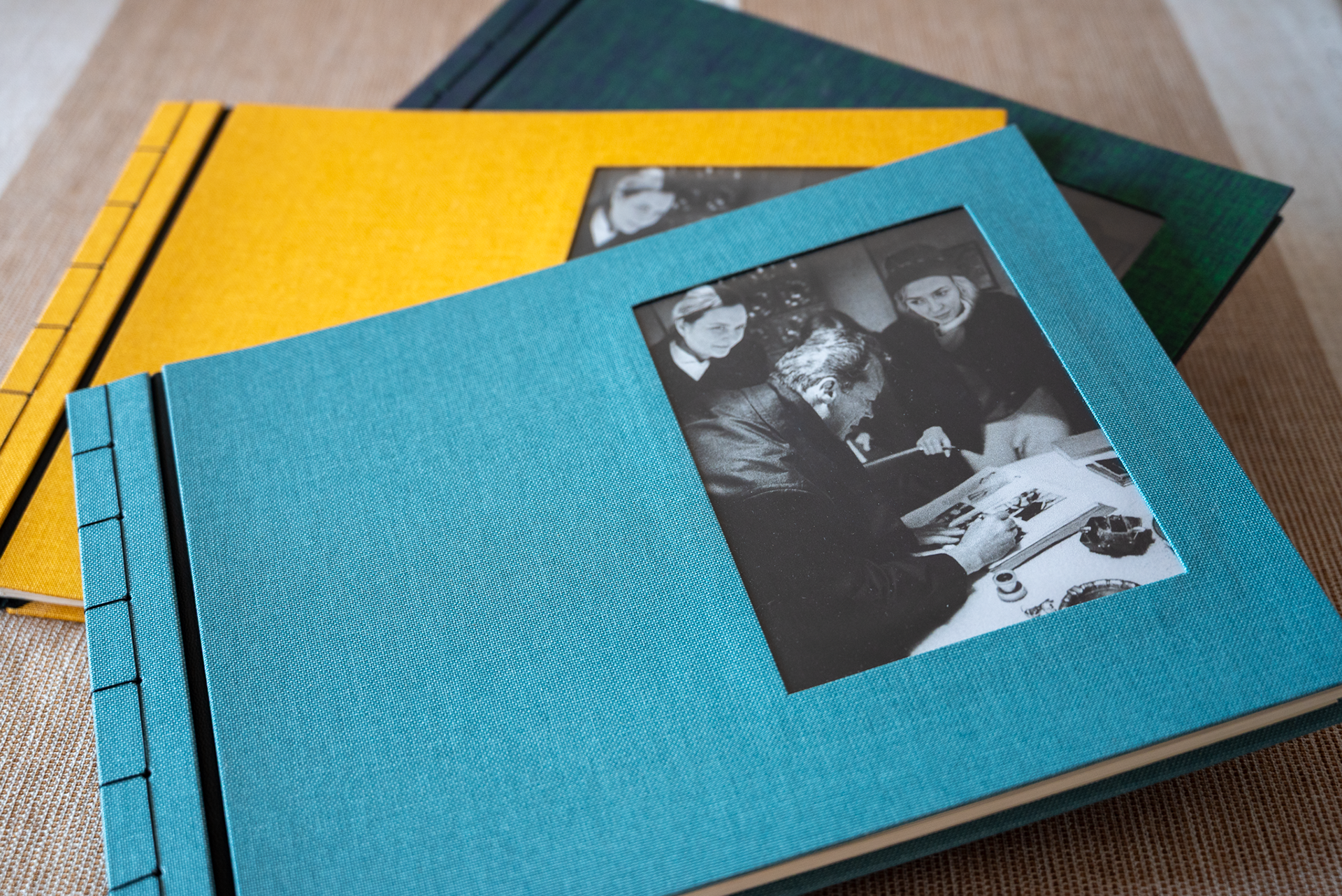 Hand-bound memory albums as a material manifestation of "Shared Frames," 2025. Bookbinding by Carmen Schmidt.